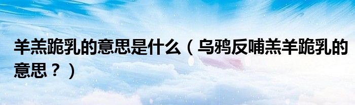 大家好,小安來為大家解答以上問題。羊羔跪乳的意思是什么,烏鴉反哺羔羊跪乳的意思?很多人還不知道,現(xiàn)在讓我們一起來看看吧!