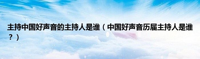 大家好,小安來為大家解答以上問題。主持中國好聲音的主持人是誰,中國好聲音歷屆主持人是誰?很多人還不知道,現在讓我們一起來看看吧!