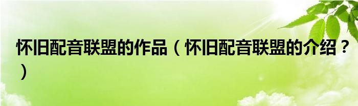 大家好,小安來為大家解答以上問題。懷舊配音聯盟的作品,懷舊配音聯盟的介紹?很多人還不知道,現在讓我們一起來看看吧!
