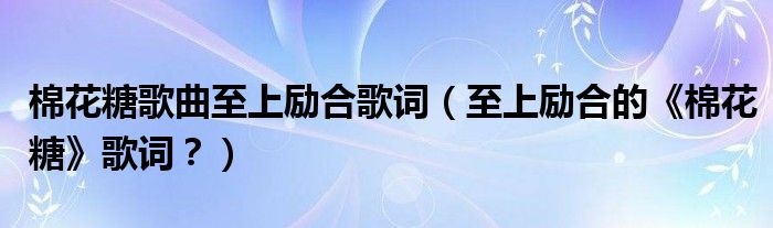大家好,小安來為大家解答以上問題。棉花糖歌曲至上勵合歌詞,至上勵合的《棉花糖》歌詞?很多人還不知道,現在讓我們一起來看看吧!