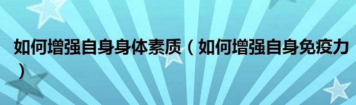 大家好,小安來為大家解答以上問題。如何增強自身身體素質,如何增強自身免疫力很多人還不知道,現在讓我們一起來看看吧!