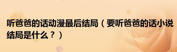 大家好,小安來為大家解答以上問題。聽爸爸的話動漫最后結(jié)局,要聽爸爸的話小說結(jié)局是什么?很多人還不知道,現(xiàn)在讓我們一起來看看吧!