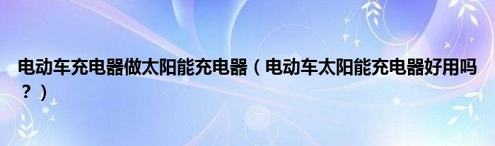大家好,小安來為大家解答以上問題。電動車充電器做太陽能充電器,電動車太陽能充電器好用嗎?很多人還不知道,現在讓我們一起來看看吧!