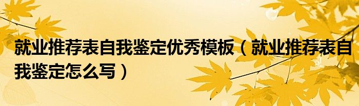 大家好,小安來為大家解答以上問題。就業推薦表自我鑒定優秀模板,就業推薦表自我鑒定怎么寫很多人還不知道,現在讓我們一起來看看吧!