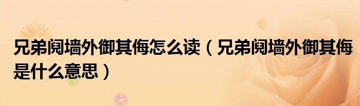 大家好,小安來為大家解答以上問題。兄弟鬩墻外御其侮怎么讀,兄弟鬩墻外御其侮是什么意思很多人還不知道,現在讓我們一起來看看吧!