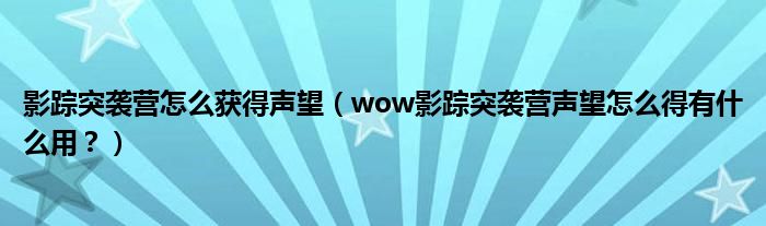 大家好,小安來為大家解答以上問題。影蹤突襲營怎么獲得聲望,wow影蹤突襲營聲望怎么得有什么用?很多人還不知道,現(xiàn)在讓我們一起來看看吧!