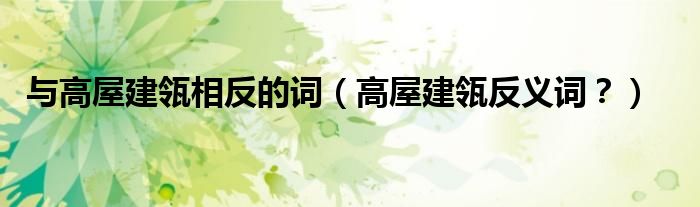 1、 反義詞:高屋建瓴是一個(gè)成語,指從高高的屋頂上把瓶子里的水倒掉。