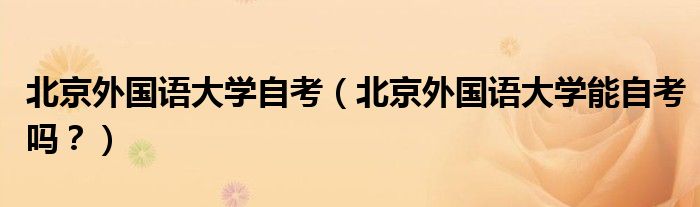 2、 北京外國語大學(Beijing Foreign Studies University)是北京自學考試的龍頭院校。提供語言類專業自考,非全日制,社會自考,自主報名考試。固定接地