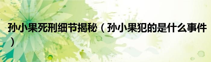 大家好,小安來為大家解答以上問題。孫小果死刑細節揭秘,孫小果犯的是什么事件很多人還不知道,現在讓我們一起來看看吧!