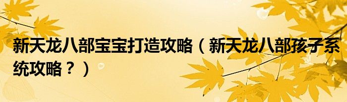 大家好,小安來為大家解答以上問題。新天龍八部寶寶打造攻略,新天龍八部孩子系統攻略?很多人還不知道,現在讓我們一起來看看吧!