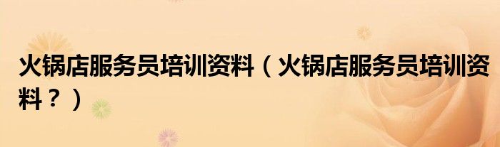 大家好,小安來為大家解答以上問題。火鍋店服務(wù)員培訓(xùn)資料,火鍋店服務(wù)員培訓(xùn)資料?很多人還不知道,現(xiàn)在讓我們一起來看看吧!