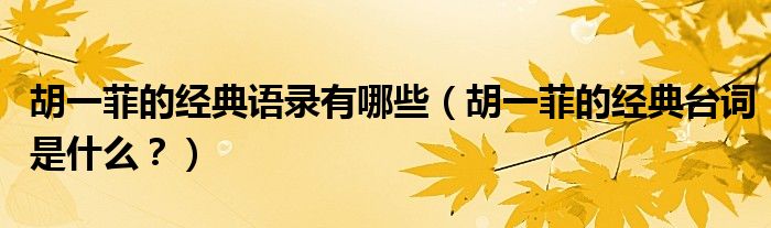 大家好,小安來為大家解答以上問題。胡一菲的經(jīng)典語錄有哪些,胡一菲的經(jīng)典臺詞是什么?很多人還不知道,現(xiàn)在讓我們一起來看看吧!