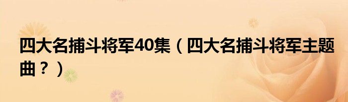 大家好,小安來為大家解答以上問題。四大名捕斗將軍40集,四大名捕斗將軍主題曲?很多人還不知道,現在讓我們一起來看看吧!