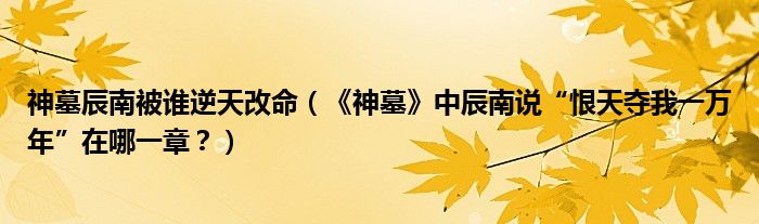 大家好,小安來為大家解答以上問題。神墓辰南被誰逆天改命,《神墓》中辰南說“恨天奪我一萬年”在哪一章?很多人還不知道,現在讓我們一起來看看吧!