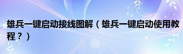 大家好,小安來為大家解答以上問題。雄兵一鍵啟動接線圖解,雄兵一鍵啟動使用教程?很多人還不知道,現在讓我們一起來看看吧!