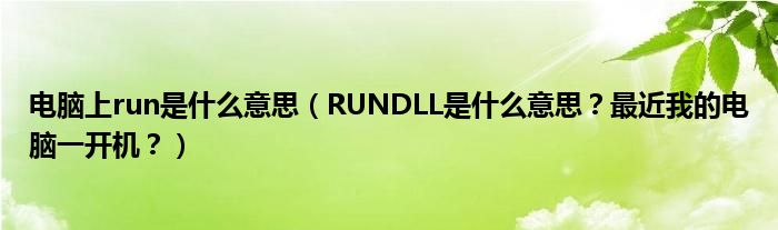 大家好,小安來(lái)為大家解答以上問(wèn)題。電腦上run是什么意思,RUNDLL是什么意思?最近我的電腦一開(kāi)機(jī)?很多人還不知道,現(xiàn)在讓我們一起來(lái)看看吧!