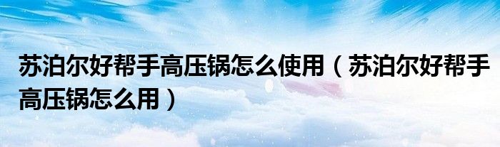 大家好,小安來為大家解答以上問題。蘇泊爾好幫手高壓鍋怎么使用,蘇泊爾好幫手高壓鍋怎么用很多人還不知道,現(xiàn)在讓我們一起來看看吧!