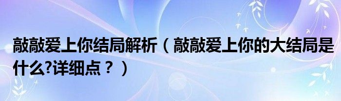 大家好,小安來為大家解答以上問題。敲敲愛上你結局解析,敲敲愛上你的大結局是什么?詳細點?很多人還不知道,現在讓我們一起來看看吧!