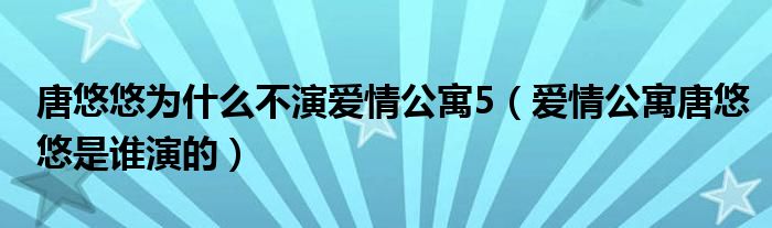 大家好,小安來為大家解答以上問題。唐悠悠為什么不演愛情公寓5,愛情公寓唐悠悠是誰演的很多人還不知道,現(xiàn)在讓我們一起來看看吧!