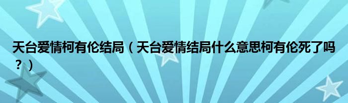 大家好,小安來為大家解答以上問題。天臺愛情柯有倫結局,天臺愛情結局什么意思柯有倫死了嗎?很多人還不知道,現(xiàn)在讓我們一起來看看吧!