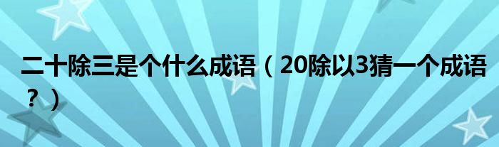大家好,小安來(lái)為大家解答以上問(wèn)題。二十除三是個(gè)什么成語(yǔ),20除以3猜一個(gè)成語(yǔ)?很多人還不知道,現(xiàn)在讓我們一起來(lái)看看吧!