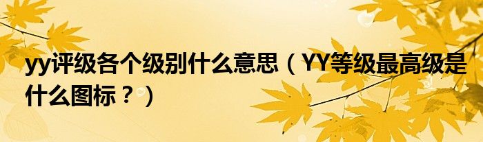 大家好,小安來為大家解答以上問題。yy評級各個級別什么意思,YY等級最高級是什么圖標?很多人還不知道,現在讓我們一起來看看吧!