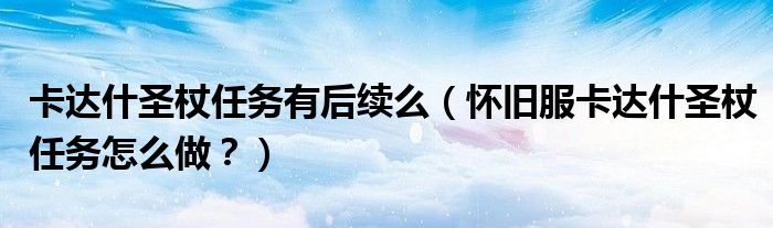 大家好,小安來為大家解答以上問題。卡達什圣杖任務(wù)有后續(xù)么,懷舊服卡達什圣杖任務(wù)怎么做?很多人還不知道,現(xiàn)在讓我們一起來看看吧!