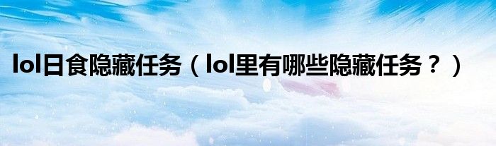 大家好,小安來為大家解答以上問題。lol日食隱藏任務,lol里有哪些隱藏任務?很多人還不知道,現在讓我們一起來看看吧!