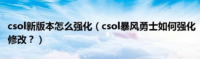 大家好,小安來為大家解答以上問題。csol新版本怎么強化,csol暴風勇士如何強化修改?很多人還不知道,現在讓我們一起來看看吧!