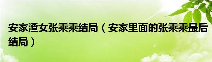 大家好,小安來為大家解答以上問題。安家渣女張乘乘結(jié)局,安家里面的張乘乘最后結(jié)局很多人還不知道,現(xiàn)在讓我們一起來看看吧!