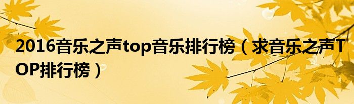 大家好,小安來為大家解答以上問題。2016音樂之聲top音樂排行榜,求音樂之聲TOP排行榜很多人還不知道,現在讓我們一起來看看吧!
