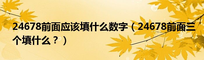 大家好,小安來為大家解答以上問題。24678前面應該填什么數字,24678前面三個填什么?很多人還不知道,現在讓我們一起來看看吧!