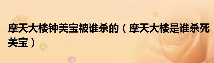 大家好,小安來為大家解答以上問題。摩天大樓鐘美寶被誰殺的,摩天大樓是誰殺死美寶很多人還不知道,現在讓我們一起來看看吧!