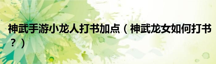 大家好,小安來為大家解答以上問題。神武手游小龍人打書加點(diǎn),神武龍女如何打書?很多人還不知道,現(xiàn)在讓我們一起來看看吧!