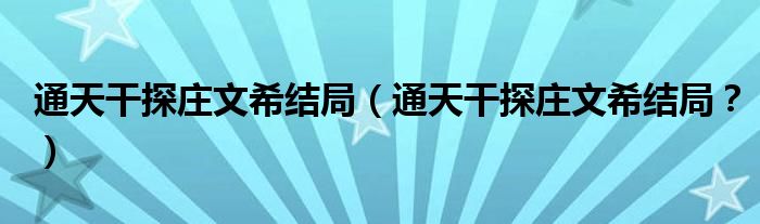 大家好,小安來為大家解答以上問題。通天干探莊文希結(jié)局,通天干探莊文希結(jié)局?很多人還不知道,現(xiàn)在讓我們一起來看看吧!