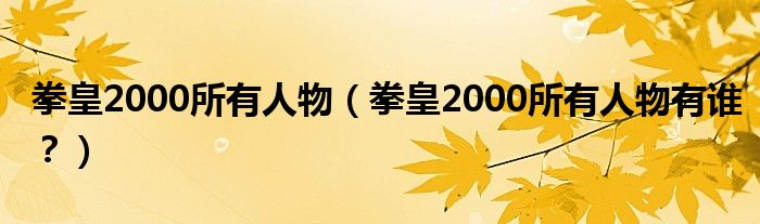 大家好,小安來為大家解答以上問題。拳皇2000所有人物,拳皇2000所有人物有誰?很多人還不知道,現(xiàn)在讓我們一起來看看吧!