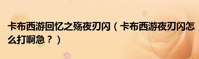 大家好,小安來為大家解答以上問題。卡布西游回憶之殤夜刃閃,卡布西游夜刃閃怎么打啊急?很多人還不知道,現在讓我們一起來看看吧!