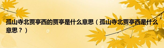 大家好,小安來為大家解答以上問題。孤山寺北賈亭西的賈亭是什么意思,孤山寺北賈亭西是什么意思?很多人還不知道,現(xiàn)在讓我們一起來看看吧!