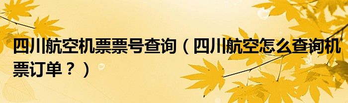 大家好,小安來為大家解答以上問題。四川航空機票票號查詢,四川航空怎么查詢機票訂單?很多人還不知道,現在讓我們一起來看看吧!