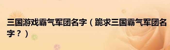大家好,小安來為大家解答以上問題。三國游戲霸氣軍團名字,跪求三國霸氣軍團名字?很多人還不知道,現在讓我們一起來看看吧!