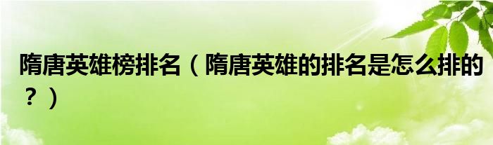 大家好,小安來(lái)為大家解答以上問(wèn)題。隋唐英雄榜排名,隋唐英雄的排名是怎么排的?很多人還不知道,現(xiàn)在讓我們一起來(lái)看看吧!