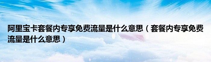 大家好,小安來為大家解答以上問題。阿里寶卡套餐內(nèi)專享免費流量是什么意思,套餐內(nèi)專享免費流量是什么意思很多人還不知道,現(xiàn)在讓我們一起來看看吧!