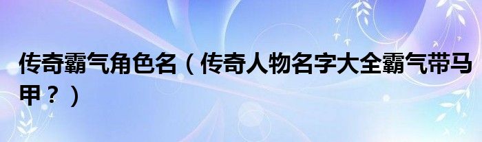大家好,小安來為大家解答以上問題。傳奇霸氣角色名,傳奇人物名字大全霸氣帶馬甲?很多人還不知道,現在讓我們一起來看看吧!