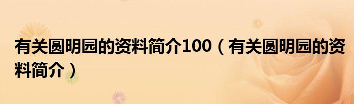 大家好,小安來為大家解答以上問題。有關(guān)圓明園的資料簡(jiǎn)介100,有關(guān)圓明園的資料簡(jiǎn)介很多人還不知道,現(xiàn)在讓我們一起來看看吧!