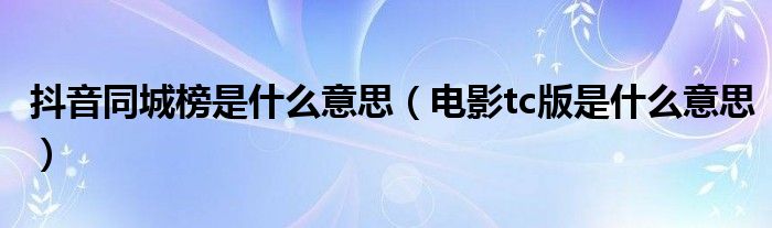 大家好,小安來(lái)為大家解答以上問(wèn)題。抖音同城榜是什么意思,電影tc版是什么意思很多人還不知道,現(xiàn)在讓我們一起來(lái)看看吧!