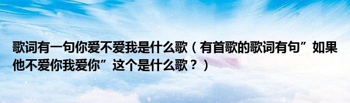 大家好,小安來為大家解答以上問題。歌詞有一句你愛不愛我是什么歌,有首歌的歌詞有句”如果他不愛你我愛你”這個是什么歌?很多人還不知道,現在讓我們一起來看看吧!