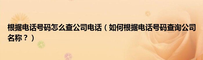 大家好,小安來為大家解答以上問題。根據電話號碼怎么查公司電話,如何根據電話號碼查詢公司名稱?很多人還不知道,現在讓我們一起來看看吧!