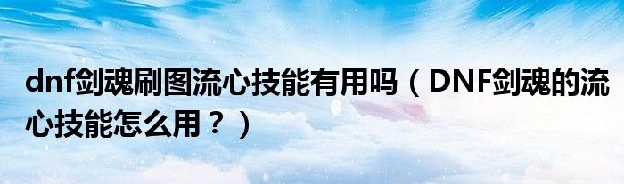 大家好,小安來為大家解答以上問題。dnf劍魂刷圖流心技能有用嗎,DNF劍魂的流心技能怎么用?很多人還不知道,現(xiàn)在讓我們一起來看看吧!