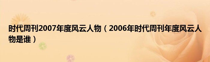 大家好,小安來(lái)為大家解答以上問(wèn)題。時(shí)代周刊2007年度風(fēng)云人物,2006年時(shí)代周刊年度風(fēng)云人物是誰(shuí)很多人還不知道,現(xiàn)在讓我們一起來(lái)看看吧!
