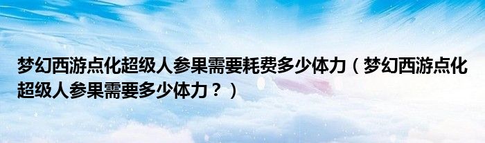 大家好,小安來為大家解答以上問題。夢幻西游點化超級人參果需要耗費多少體力,夢幻西游點化超級人參果需要多少體力?很多人還不知道,現在讓我們一起來看看吧!